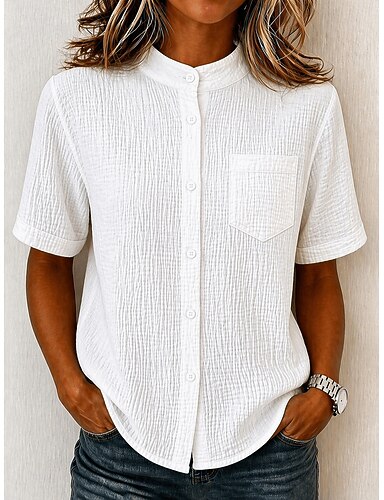 Per donna 100% cotone Camicia button-down Camicia casual Arricciato Tasca Bottoni Tinta unica Vacanza Vintage Elegante Senza Maniche Ad aletta Collo alla coreana Top Regolari Casuale Blu Bianco Rosa