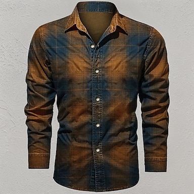 Per uomo Camicia Camicia Estiva Camicia a quadri Camicia con Bottoni Giallo Rosso Blu Manica Lunga Quadri Collo ripiegato Streetwear Quotidiano Bottonato Abbigliamento Poliestere Moda Casual