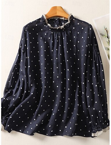 Per donna Camicia Blusa Maglie a manica lunga Patchwork A Pois Elegante Classico Moderno Manica Lunga Collo alla coreana Top Regolari Quotidiano Ferie Uscire Blu Estate Primavera