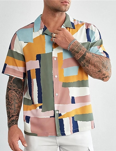 Per uomo Plus Size Camicia hawaiana Grande e alto Color Block Collo ripiegabile Stampa Manica corta Primavera estate Tropicale Di tendenza Hawaiano Esterno Strada Top