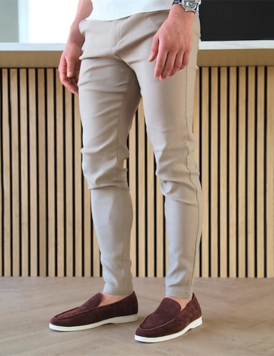 Per uomo magro Pantaloni Chino Tasche A cordoncino Vita elastica Tinta unica Comfort Formale Ufficio Giornaliero Di tendenza Classico Nero Blu scuro Media elasticità