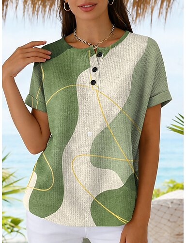 t-shirt waffle da donna top estivi color block stampa grafica geometrica piante vintage elegante classico manica corta girocollo girocollo top regular casual quotidiano verde arcobaleno estate