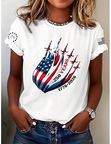 Giorno dell'Indipendenza Americana Per donna Maglietta Stampato Grafico Bandiera Lettera Vintage Elegante Classico Manica Corta Girocollo Top Regolari Quotidiano Blu Cenere Nero Bianco Estate
