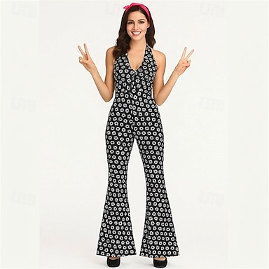 Retrò Vintage Anni '70 Tuta Hippie All'americana Floreale Costume Per donna Halloween Carnevale Mascherata Feste Abbigliamento quotidiano Adulti Tuta Estate
