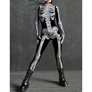 Tuta Intera Costume Cosplay Body Catsuit a Corpo Intero Teschio scheletro Un Pezzo Cosplay Bambini Adulti Per donna Mascherata Feste Halloween Vestirsi