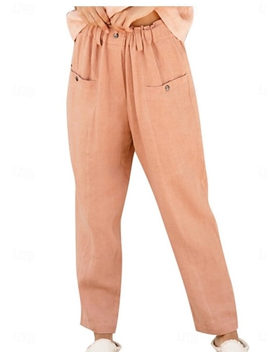 Per donna Finto cotone e lino Pantaloni Affusolati Pantaloni Estivi Pantaloni Moda Essenziale Casual Lunghezza intera Misura del girovita medio Semplice Tasche Laterali Baggy Comodità Micro-elastico