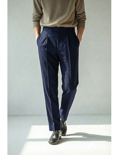 Uomo Cotone Lino Pantaloni Eleganti Pantaloni casual Abbigliamento casual alla moda Affari Elegante Attivo Formale Blu marino scuro Verde scuro Viola Primavera & Estate Pantaloni Tinta unica