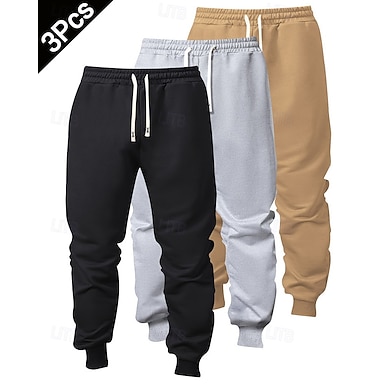 Confezioni multiple Confezione da 3 Per uomo Nero+Grigio+Cachi Pantaloni da tuta Pantaloni Coulisse Elastico in vita Semplice Vacanza Abbigliamento quotidiano Poliestere Primavera