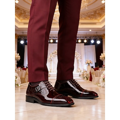scarpe monk strap da uomo in similpelle bordeaux – design lussuoso con dettagli a coda di rondine, perfette per matrimoni e celebrazioni formali
