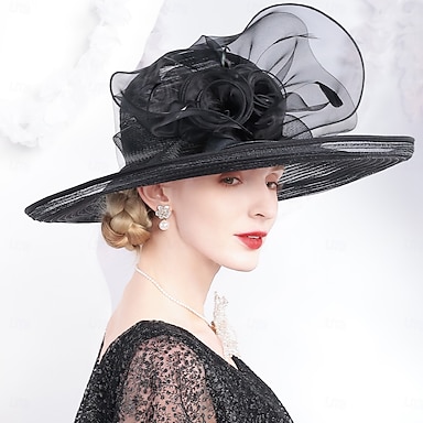 Cappelli Tulle Paglia Bombetta / Cappello a cloche Cappello a piattino Cappello a cilindro Tè Corsa di Cavalli Romantico Britannico Con Fiocco Copricapo Copricapo