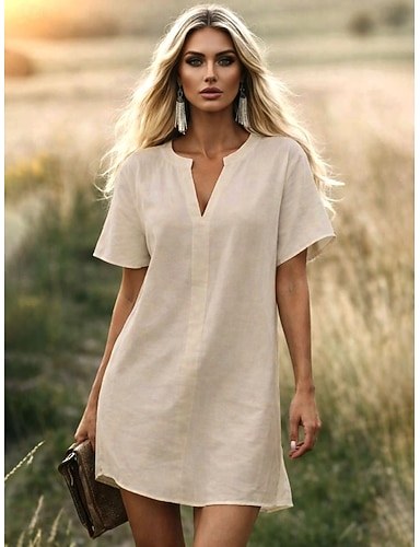 Per donna Abito maxi Finto cotone e lino Abito a Tubino Vestito Casual Essenziale Moderno Quotidiano Weekend Vestibilità comoda Semplice Mezza Manica Scollo a V Blu marino Arancione Verde Kaki Estate
