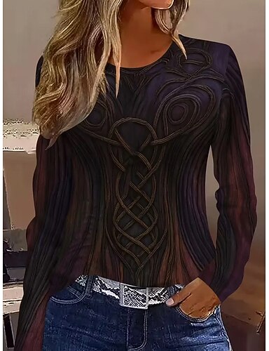 Per donna Maglietta Stampato Grafico Geometrico Astratto Vintage Moda Elegante Manica Lunga Girocollo Top Regolari Quotidiano Weekend Rosa Primavera Autunno Inverno