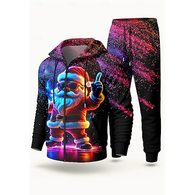 Natale Per uomo Felpa con cappuccio Tuta da Ginnastica Tuta da 2 pezzi Coulisse Con zip Galassia Completo Abbigliamento Autunno Viola Lavoro All'aperto Viaggio Leggero Di tendenza Manica Lunga Sport