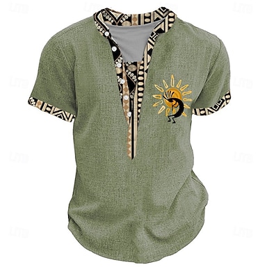 Per uomo Grafico Tribale Maglia Henley Manica Corta Stampa 3D Moda Designer Essenziale Streetwear Casuale Quotidiano Estate Primavera Blu chiaro Nero Verde Cachi Collo alla coreana Maglietta Henley