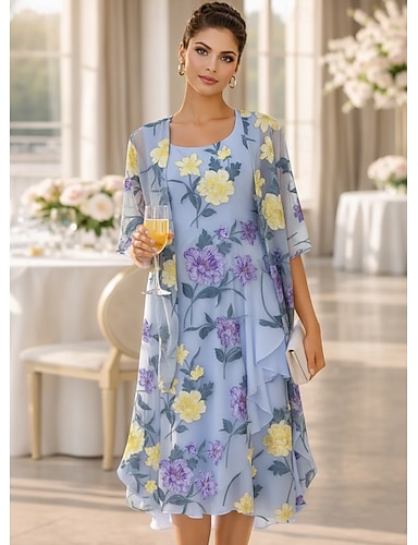Due Pezzi Linea ad A Abito Lunghezza al ginocchio Abito da invitata a nozze Largo Abito da cerimonia per signora Mezza Manica Scollo a Barca Elegante Semplice Formale Ospite di nozze Ricevimento di