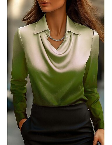 Per donna Camicia Arricciato Drappeggiato Ombre Grafico Geometrico Elegante Essenziale Casual Manica Lunga Scollo a Cascata Top Regolari Quotidiano Lavoro Abbigliamento da sera Verde primavera Verde