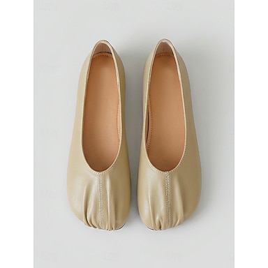Eleganti ballerine da donna color albicocca - scarpe slip-on in morbida similpelle con punta arrotondata e plissettatura, perfette per uno stile chic francese, per gli spostamenti quotidiani e per l'ufficio.