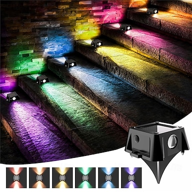 Luci solari per recinzioni, luci da parete, bianco caldo e modalità ciclica RGB. Luci solari ambientali impermeabili per cortili, adatte per ringhiere, gradini, terrazze, scale e pareti.