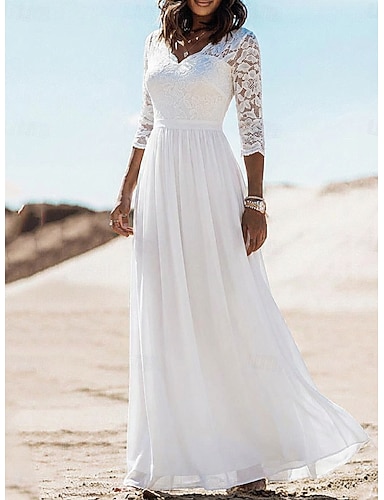 Linea ad A Lunghezza Tè Vestito da Festa Abito da Cocktail Abito da invitata a nozze Abito da cerimonia per signora Manica 3/4 Scollo a V Elegante Formale Serata Formale Ricevimento di matrimonio