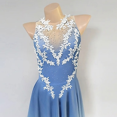 Abito da pattinaggio artistico Per donna Pattinaggio sul ghiaccio Vestito Azzurro cielo Patchwork Orlo asimmetrico Elasticizzato Allenamento Competizione Vestiti da pattinaggio sul ghiaccio Classico