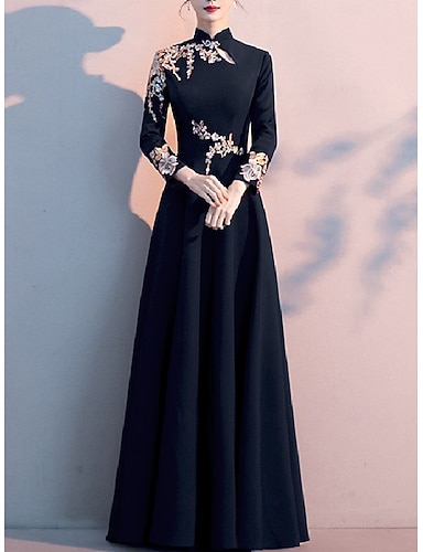 Abito da sera A-Line Elegante Ospite di matrimonio Lunghezza fino al pavimento Senza maniche Collo alto Ospite di matrimonio autunnale Chiffon con applicazioni Colore puro