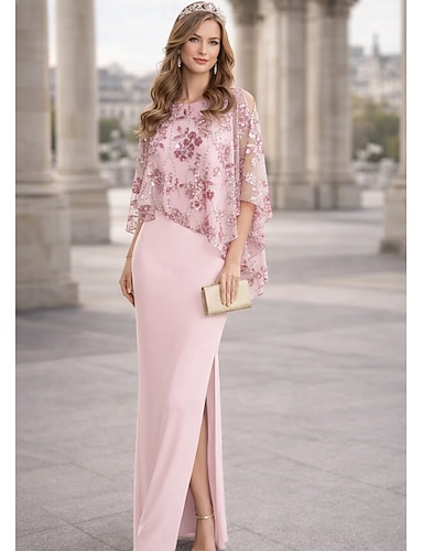 Tubino Colonna Abito Lunghezza al pavimento Abito da invitata a nozze Abito da cerimonia per signora Manica Corta Scollo a Barca Elegante Semplice Brillare & Splendere Formale Ospite di nozze Festa