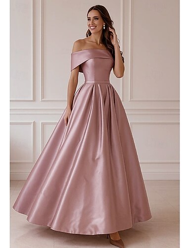 Linea ad A Lunghezza al pavimento Abito da Sera Da principessa Abito formale Elegante Manica Corta Senza Spalle Formale Tasca Raso con Arricciato