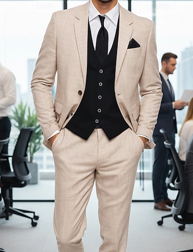 Uomo Completi in Lino Matrimonio in Spiaggia Casuale Beige Primavera & Estate Tuta Bavero classico Quotidiano Leggero Tinta unita Vestibilità standard 2 pezzi Monopetto a un bottone