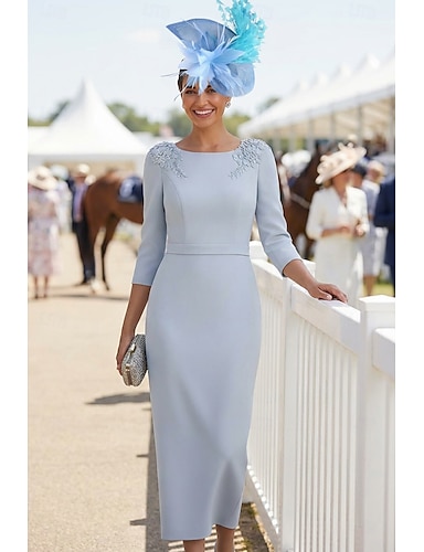 Due Pezzi Tubino Colonna Lunghezza Tè Abito da invitata a nozze Abito da cerimonia per signora Manica 3/4 Girocollo Elegante Vintage Semplice Formale Ospite di nozze Pizzo con Ricamo