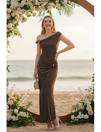 Tubino Colonna Lunghezza alla caviglia Abito da invitata a nozze Abiti per invitati a matrimoni Elegante Quotidiano Senza Maniche Monospalla Festa in giardino Matrimonio con Arricciato