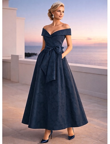 Linea ad A Lunghezza al pavimento Lunghezza alla caviglia Vestito da Festa Abito da Cocktail Abito da invitata a nozze Abito da cerimonia per signora Manica Corta Senza Spalle Elegante Minimalista
