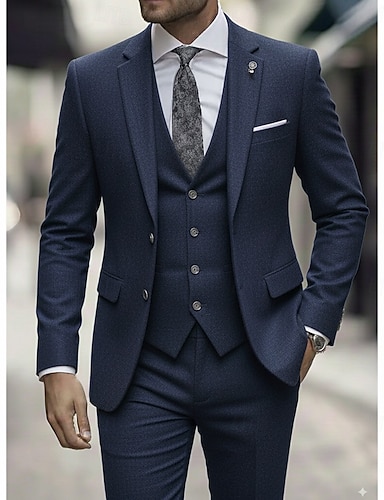 Uomo Abiti da festa Casuale Matrimonio Nero Blu scuro Autunno & Inverno Tuta Bavero a lancia Formale Tinta unita Vestibilità su misura 3 pezzi Monopetto Due Bottoni