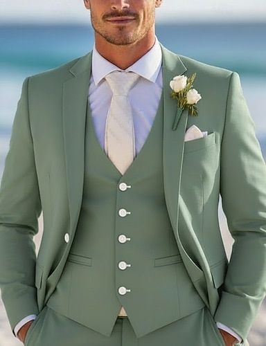 Uomo Smoking Abiti da sposo Matrimonio in Spiaggia Matrimonio primaverile Verde salvia Primavera & Estate Tuta Bavero classico Moda Formale Tinta unita Vestibilità su misura 3 pezzi Monopetto a un