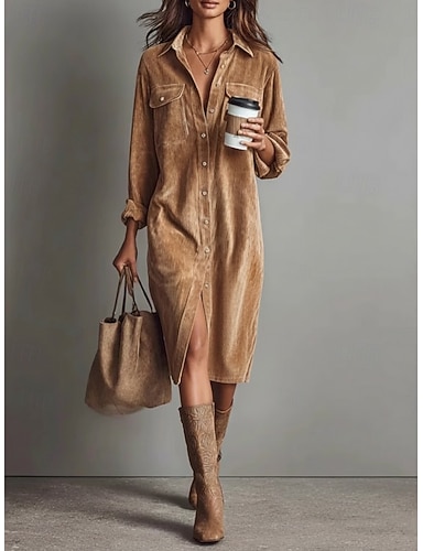 Per donna Abito lungo maxi Vestito da Festa Elegante Vintage Vestibilità regolare Tinta unica Manica 3/4 Scollo a V Marrone Autunno Inverno