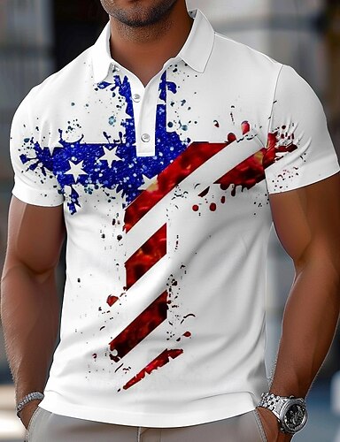 4 luglio 2026 250° Per uomo Bandiera Americana Polo Manica Corta Magliette polo Camicie con Colletto Casual Athleisure Abito da festa Bottoni Estate Blu