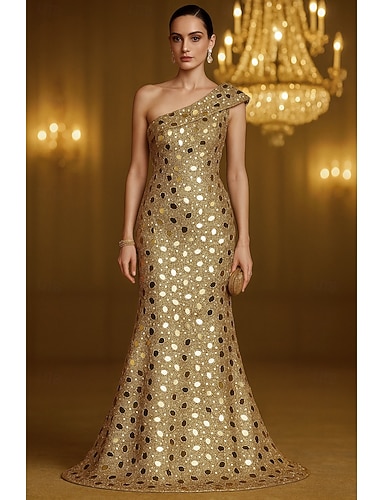 Tubino Colonna Lunghezza al pavimento Abiti da Ballo Abito da Sera Da principessa Abito formale Elegante Senza Maniche Monospalla Matrimonio Formale Con Paillettes con Glitter
