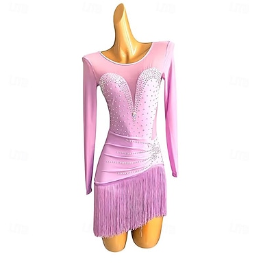 Danza Latina Vestito Strass Nappa Per donna Feste Allenamento Performance Manica Lunga Spandex Nylon