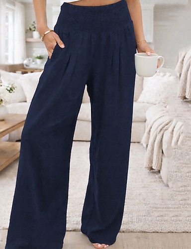 Per donna Finto cotone e lino Gamba larga Chinos Pantaloni Estivi Streetwear Essenziale Casual Lunghezza intera Vita Alta Semplice Tasca Comodo Morbido Confortevole Inelastico All'aperto Streetwear