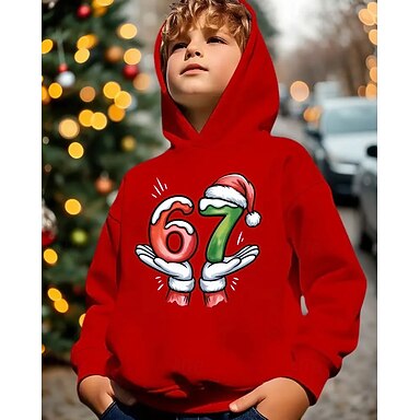 Natale Unisex Ragazzi 3D Grafico Gergo divertente 67 Felpa con Cappuccio Maglione Manica Lunga Stampa 3D Autunno Inverno Sport Moda Streetwear Bambini 4-12 Anni Con cappuccio All'aperto Casuale