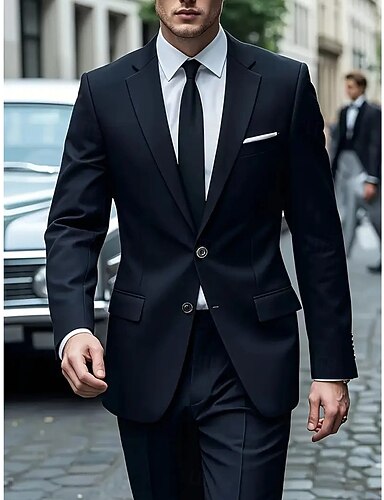 Uomo Abiti da festa Casuale Affari Nero Tuta Bavero classico Casual Formale Tinta unita Vestibilità su misura 2 pezzi Monopetto Due Bottoni