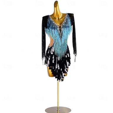 Danza Latina Vestito Strass Per donna Feste Allenamento Performance Manica Lunga Spandex Nylon
