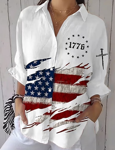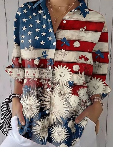 Abito midi patriottico da donna per il Giorno dell'Indipendenza abito vintage casual vestibilità regolare grafico floreale bandiera maniche lunghe collo a V khaki estate primavera