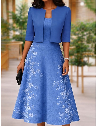Abito di laurea da donna Abito midi Set di abiti Due pezzi Stampa floreale Collo a giro nudo Elegante Classico Vacanza Manica corta Estate Primavera