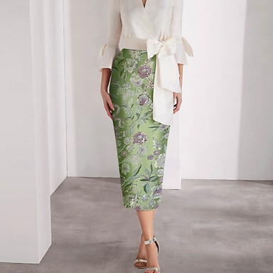 Tubino Colonna Set di Abiti Lunghezza alla caviglia Vestito da Festa Abito da Cocktail Abito da invitata a nozze Abito da cerimonia per signora Manica 3/4 Scollo a Barca Elegante Vintage Formale