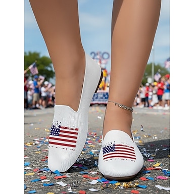 scarpe slip-on in maglia da donna per il 250° anniversario degli Stati Uniti: comode e leggere scarpe basse casual, stile patriottico da strada per feste nazionali, festival, viaggi &camminare tutti i