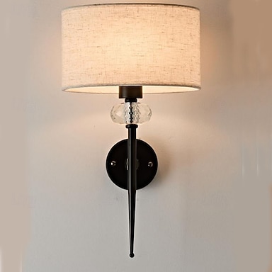 Applique con paralume semicircolare in lino, lampada da parete nera, illuminazione da parete per camera da letto, applique da parete, lampada da parete rustica moderna bianco caldo 110-240 V