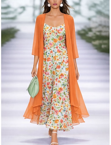 Per donna Abito Midi Abito a trapezio Vacanza Casual Boho Feste Vestibilità regolare Ombre Floreale Grafico Manica 3/4 Scollo a V Blu Arancione Estate Primavera Autunno