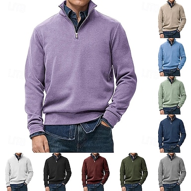 Per uomo Maglia Felpa con zip corta Nero Bianco Vino Verde militare Cachi Mezza zip Semplice A coste Testurizzato Trama a maglia Sport & Outdoor Quotidiano Ferie Poliestere Streetwear Essenziale