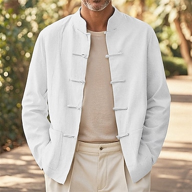Per uomo Giacca Camicia Giacca di lino Vacanza Quotidiano Traspirante Tasca Primavera Autunno Semplice Moda Classico Collo alla coreana Regolare Nero Bianco Blu marino Cachi Giacca