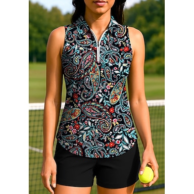 250° anniversario dell'America Giornata dell'indipendenza Per donna Bandiera Nazionale Maglietta sportiva Polo da golf Maglia da tennis Senza Maniche Cerniera Floreale UPF50+ Resistente ai Raggi UV